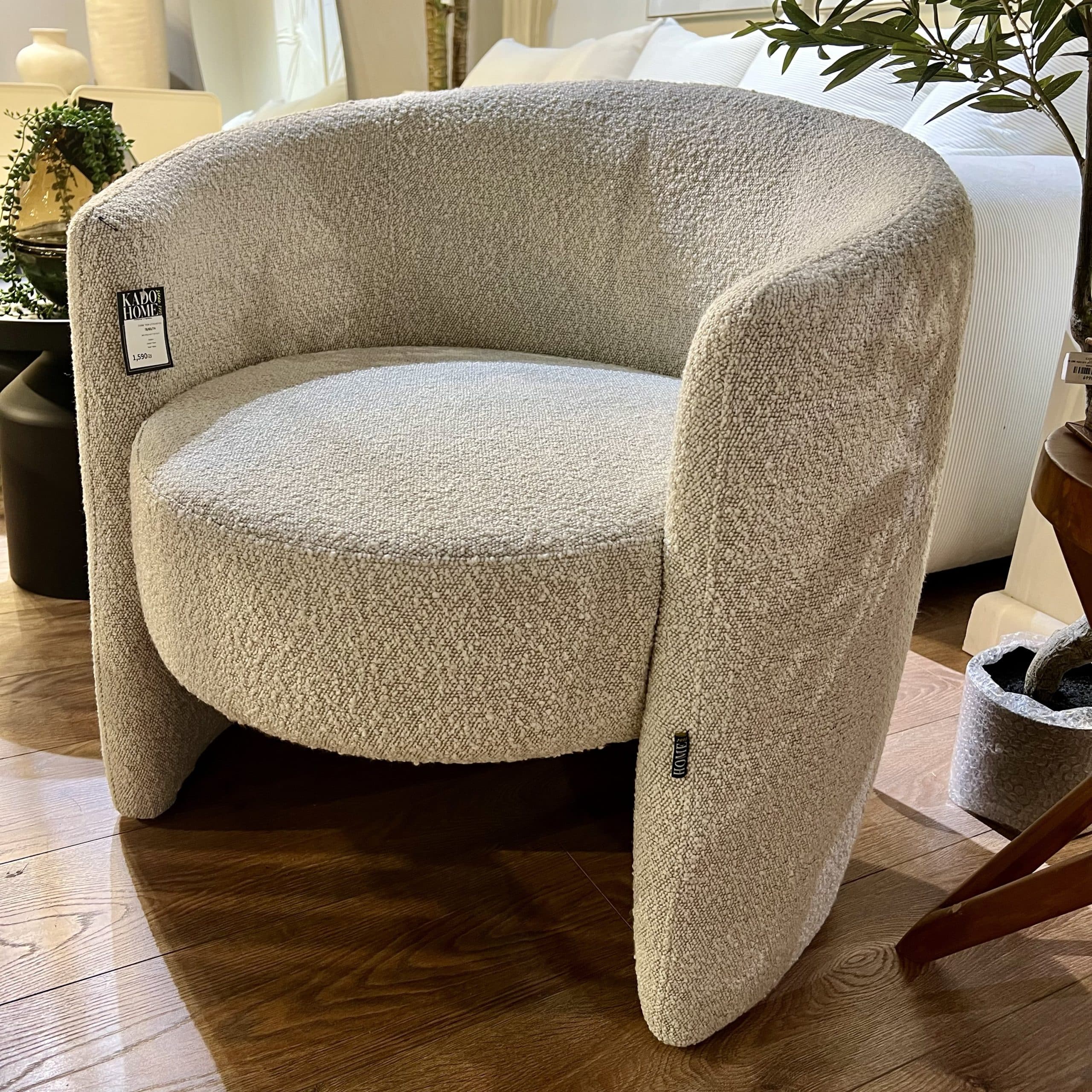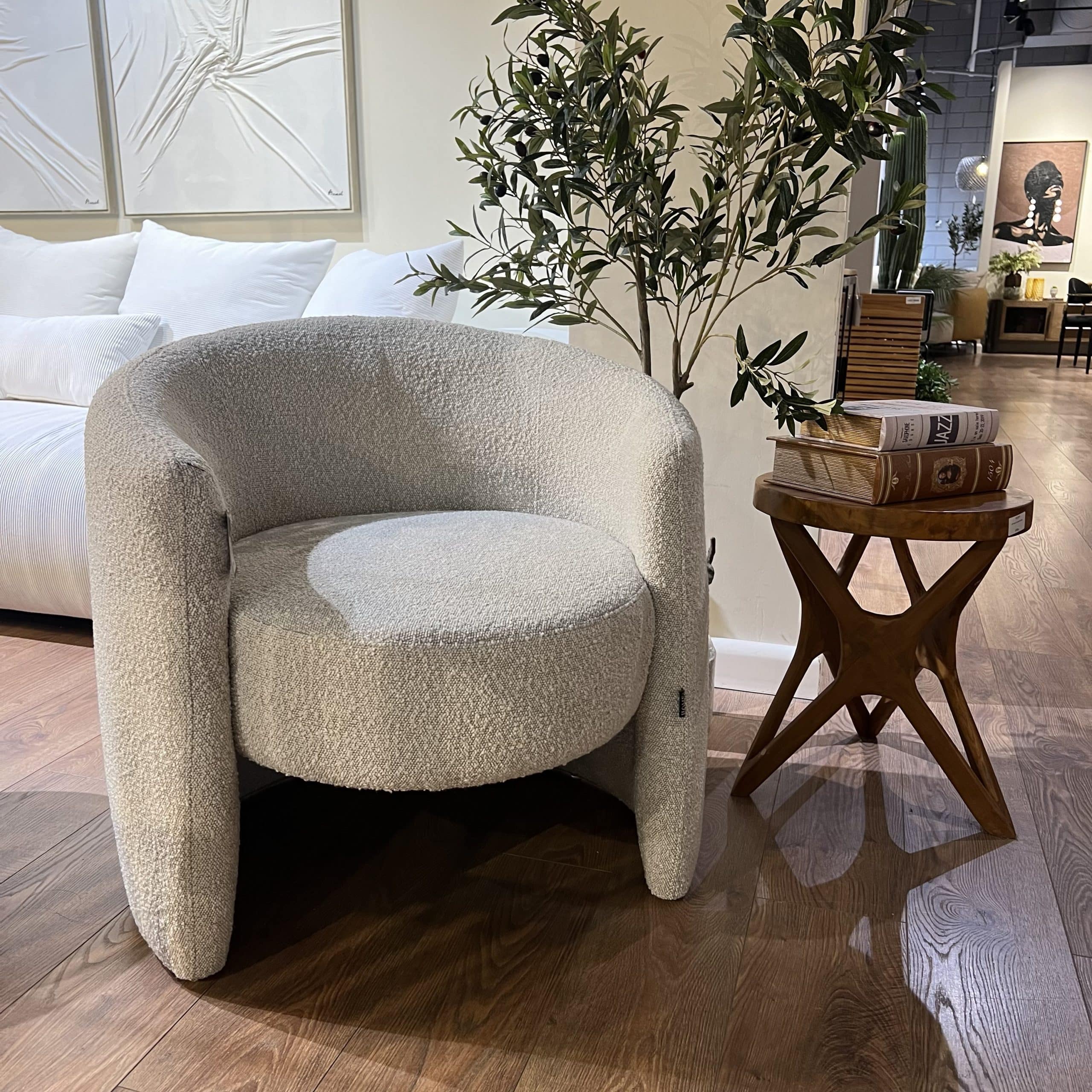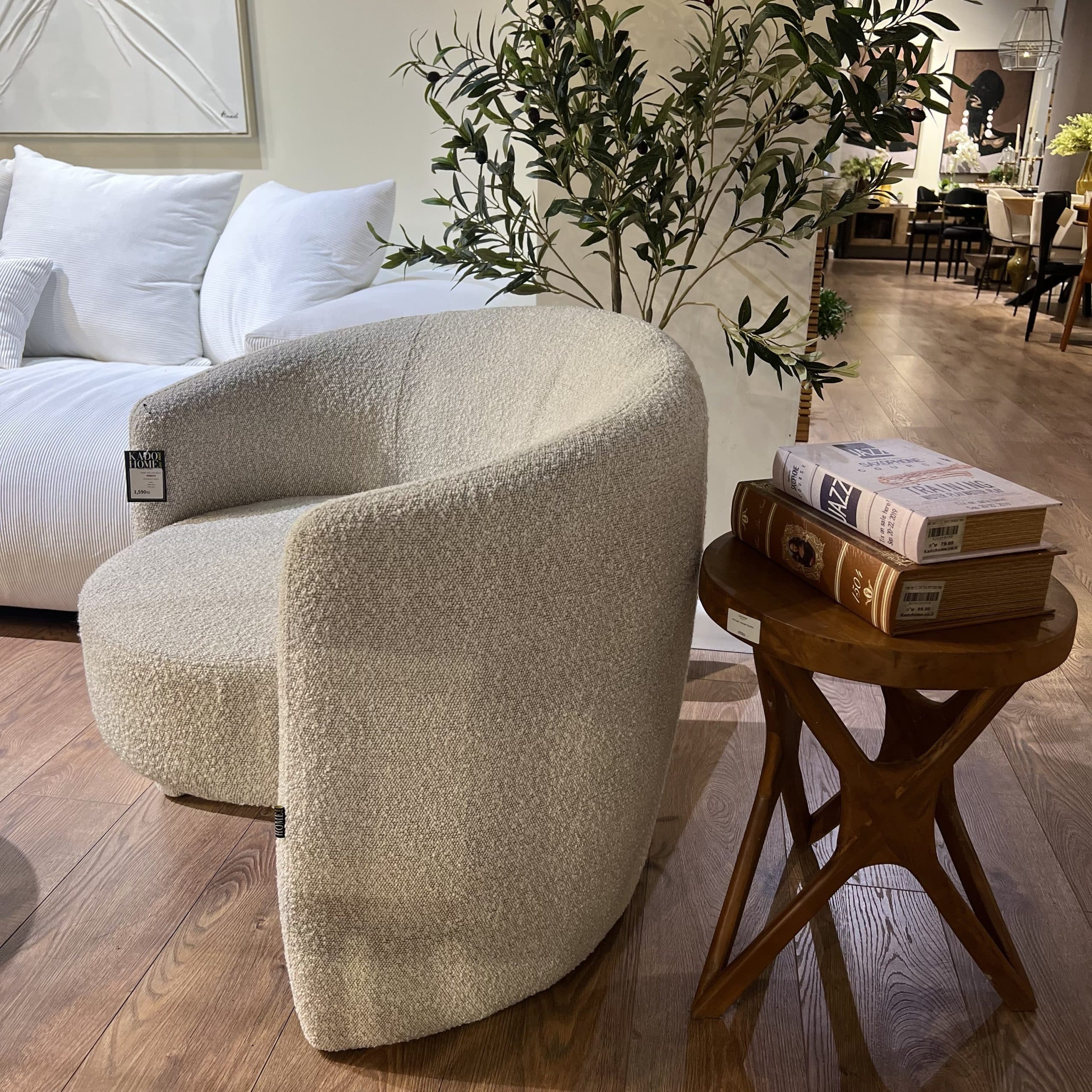 כורסא שיקית מיוחדת במראה קלאסי ובד אריג בגווני שמנת ואפרפר
