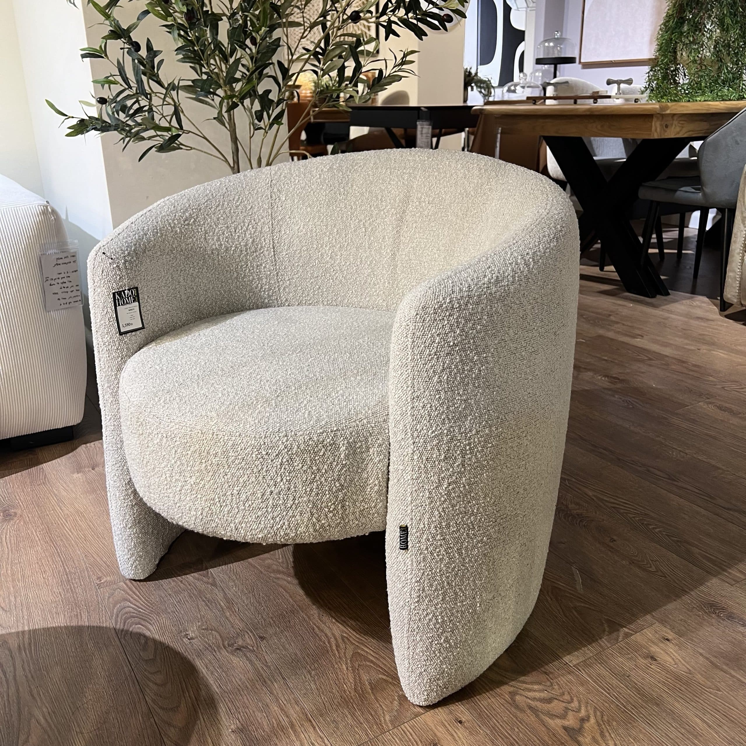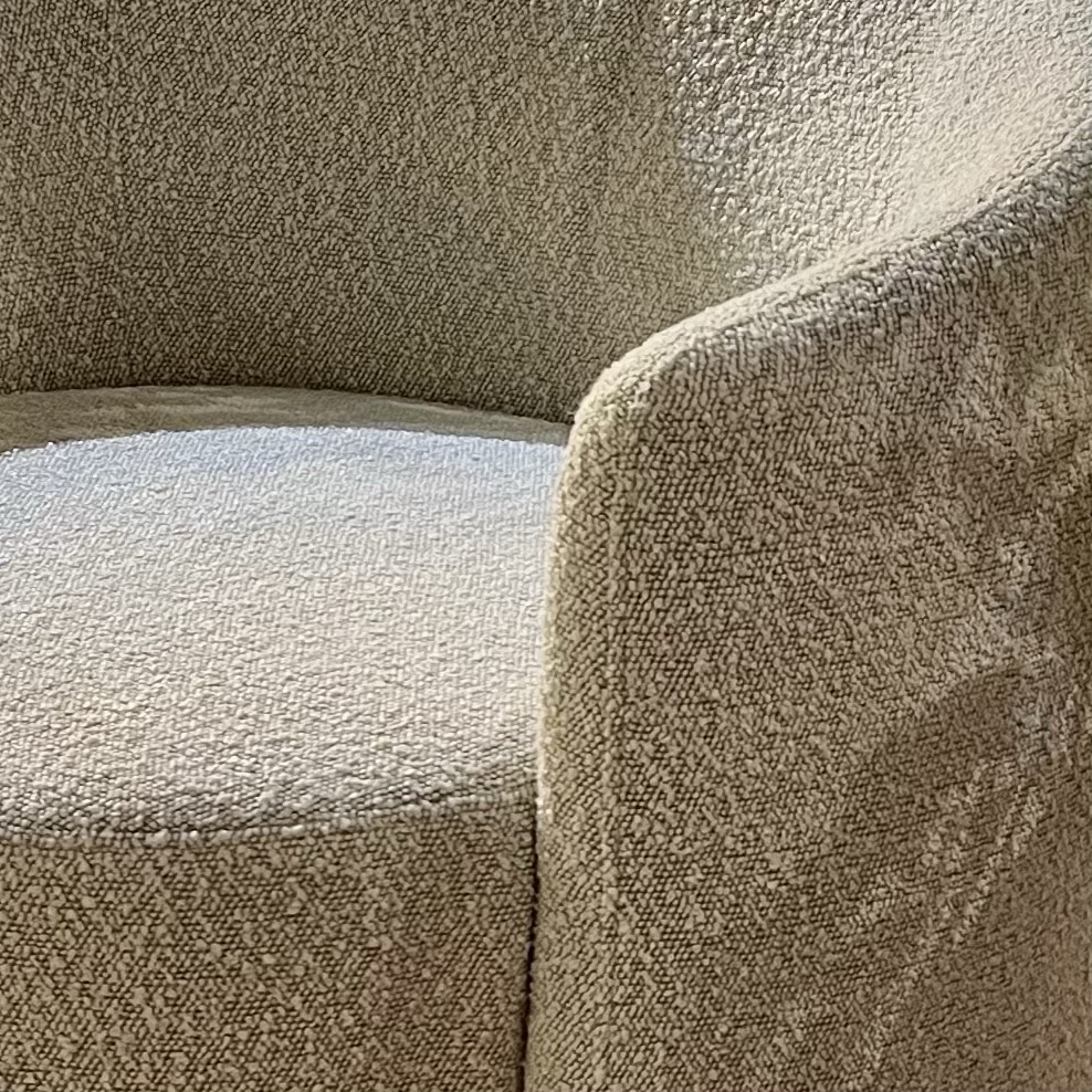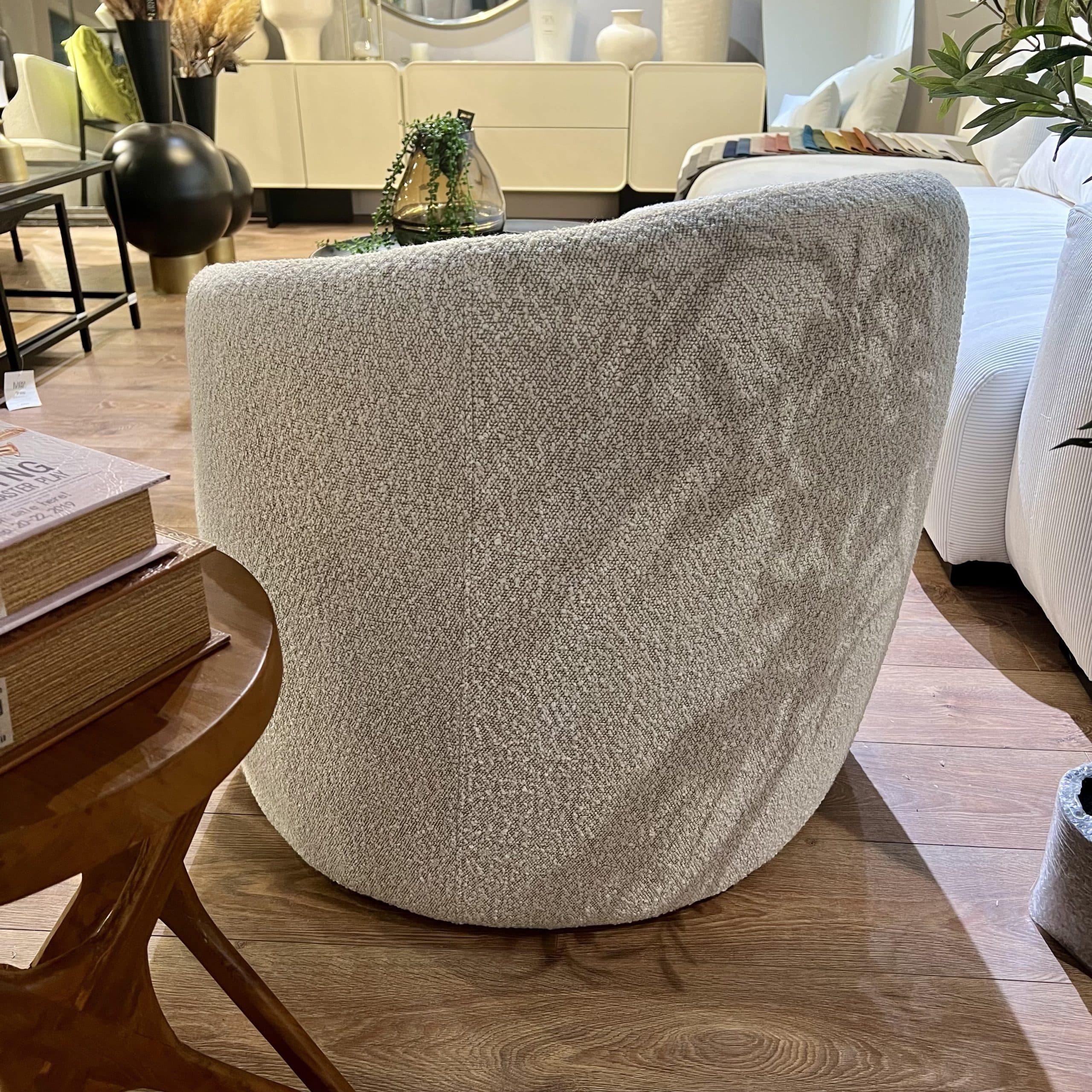 כורסא שיקית מיוחדת במראה קלאסי ובד אריג בגווני שמנת ואפרפר