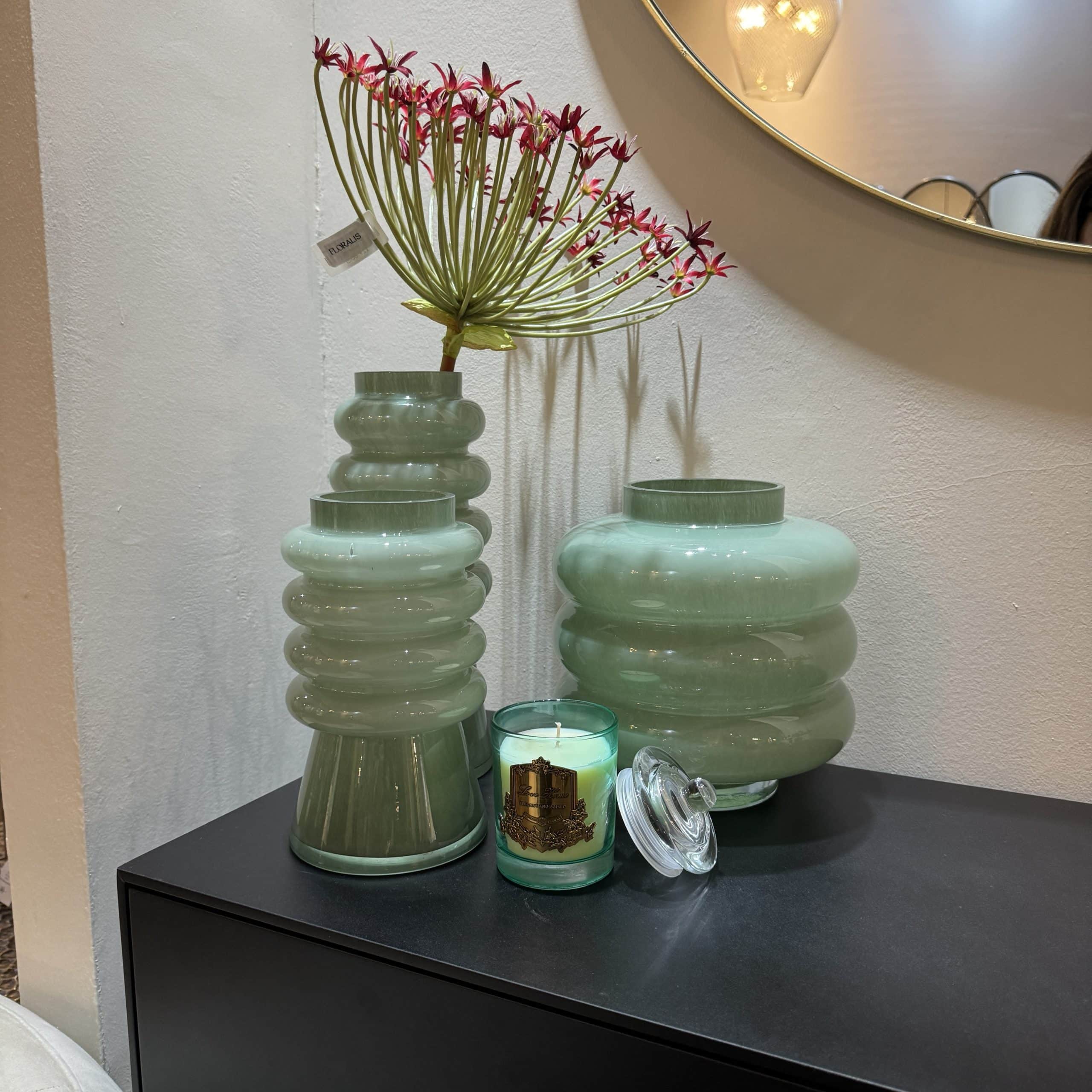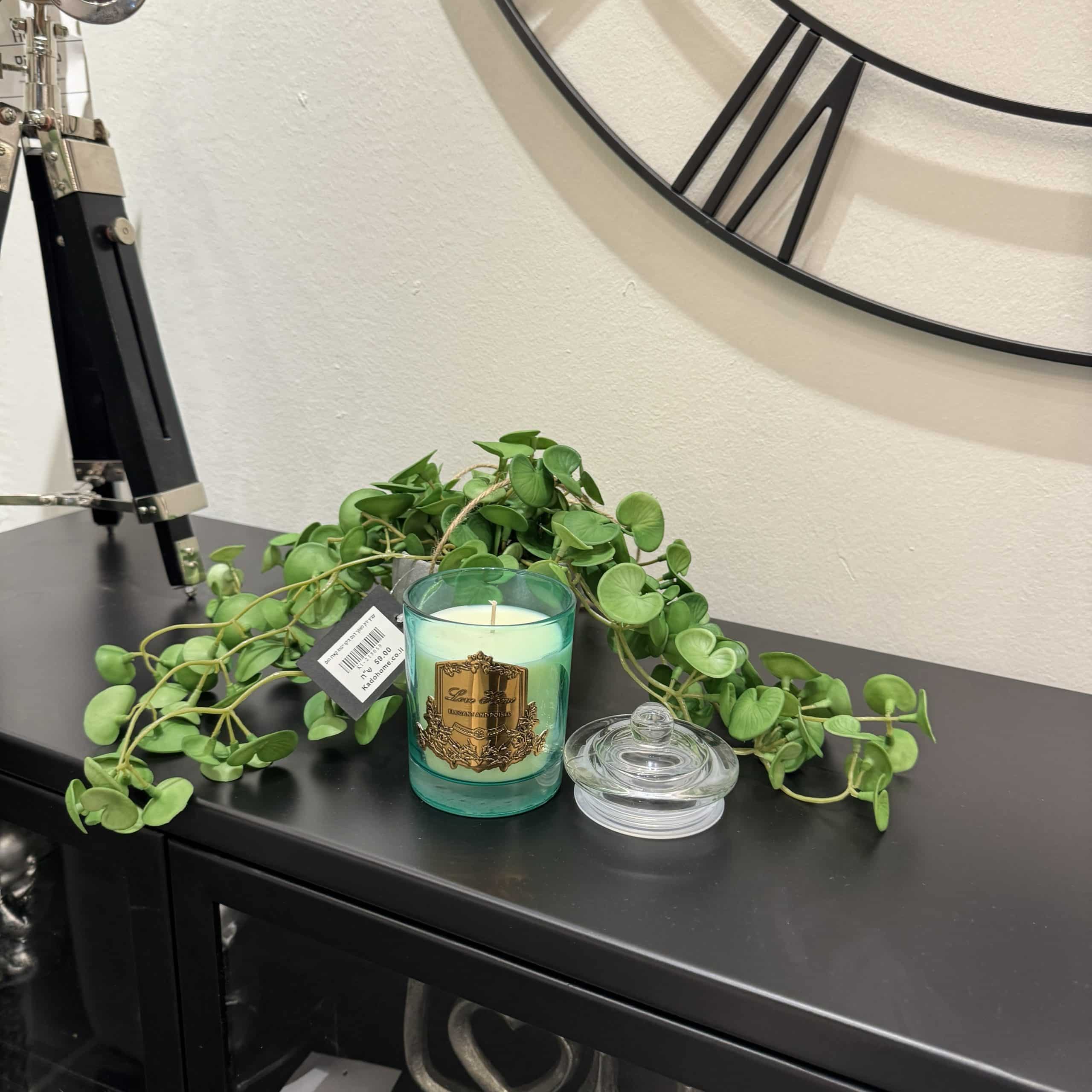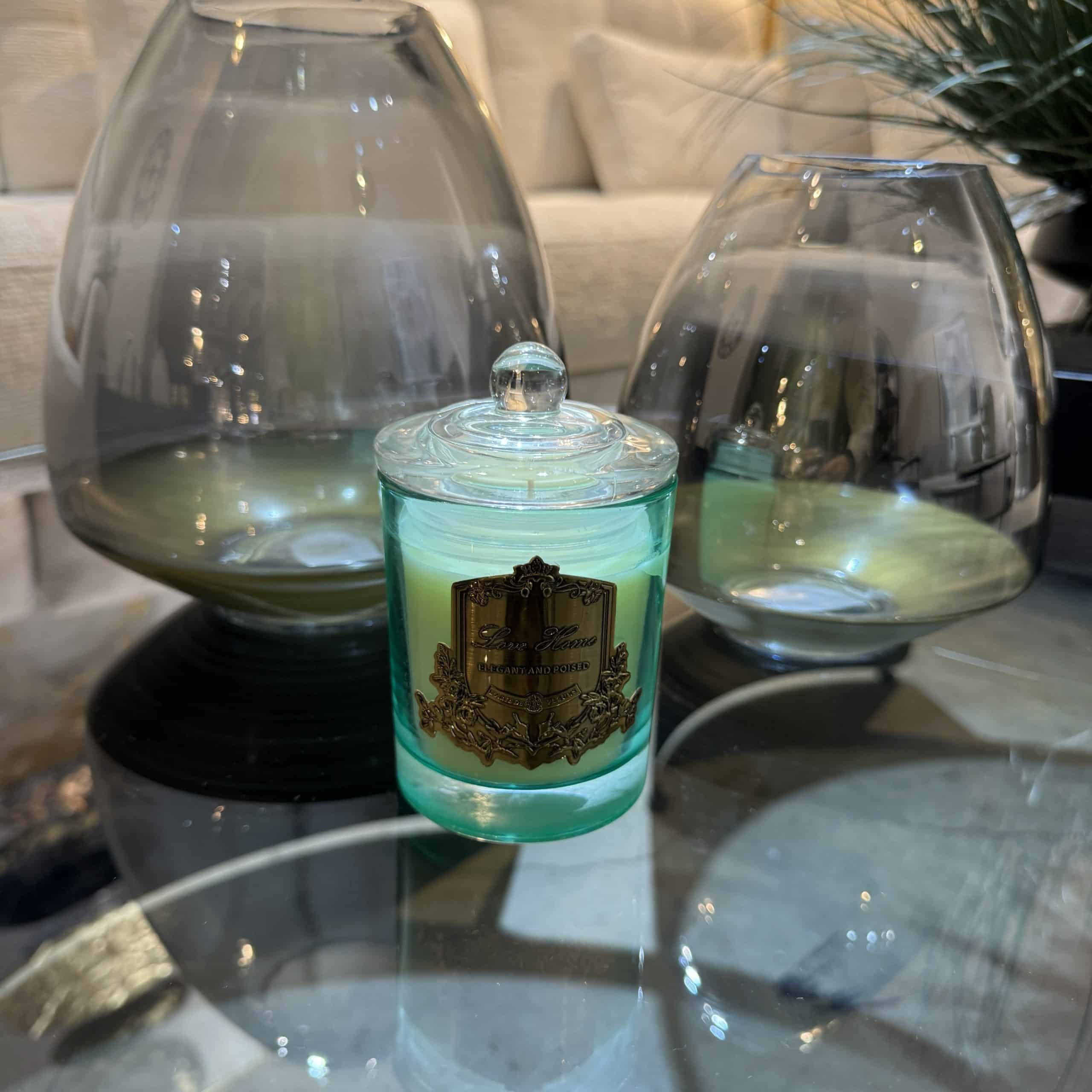 נר ריחני בתוך פמוט זכוכית עם מכסה מרשים ביופיו, בניחוח נהדר!