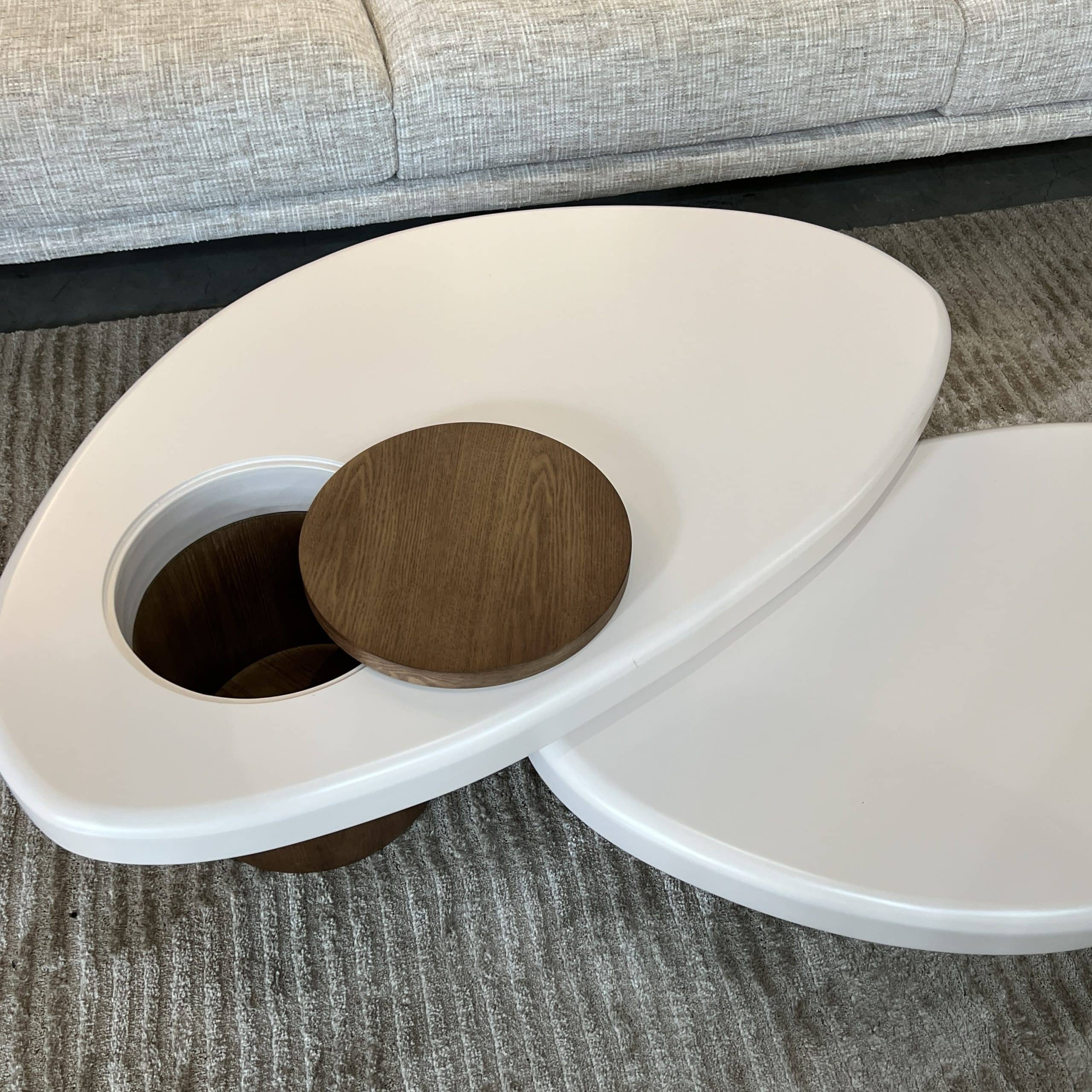 סט שולחנות סלון אמורפי שמנת עם תא אחסון אגוז דגם סופיטל -הזמנה מוקדמת ל-1.26