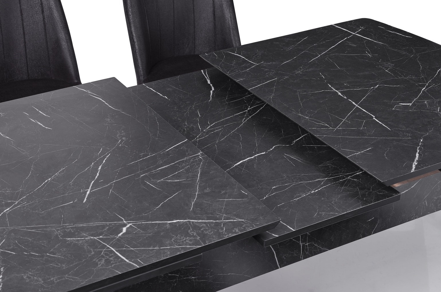 שולחן שיש וכיסאות שחורים / שולחן אפור וכיסאות אפורים / שולח עץ וכיסאות שחורים / שולחן עץ וכיסאות בז’